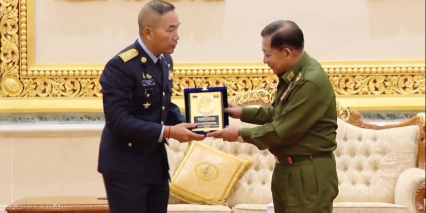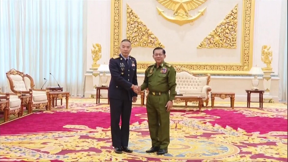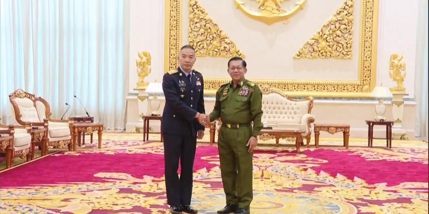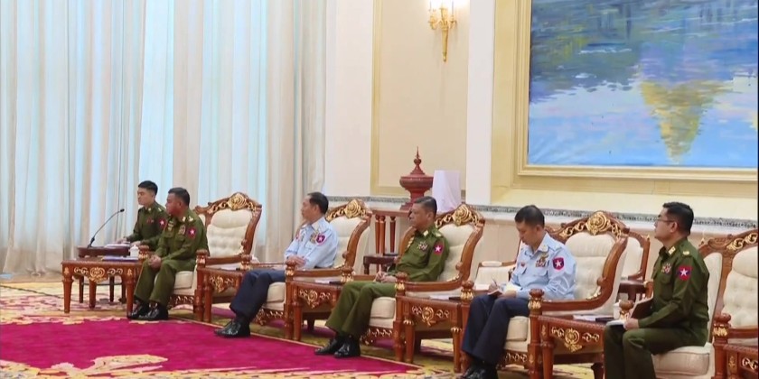 Acting President, Chairman of the State Security and Peace Commission Commander-in-Chief of Defence Services Senior General Min Aung Hlaing received Air Chief Marshal Sakesan Kantha, Commander-in-Chief of the Royal Thai Air Force and delegation at the reception hall of Zeya Thiri Beikman in Nay Pyi Taw on Wednesday.