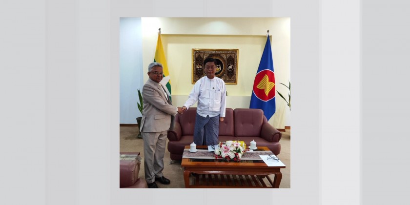 Deputy Minister of the Ministry of Foreign Affairs U Lwin Oo received Indian Ambassador to Myanmar Mr. Abhay Thakur at the Ministry in Nay Pyi Taw on Friday.