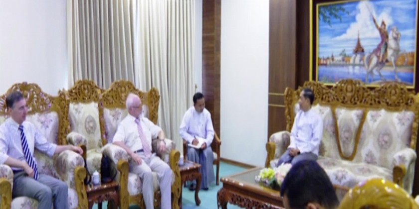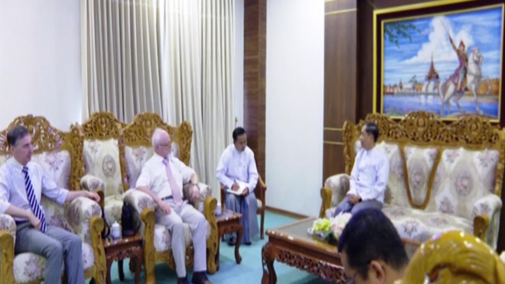 Union Minister for International Cooperation U Ko Ko Hlaing received the delegation headed by Senior Vice-President of the Russia-Myanmar Association of Friendship and Cooperation Mr. Anatoly Bulochnikovat the Union Minister’s Office in Nay Pyi Taw on 26th April.