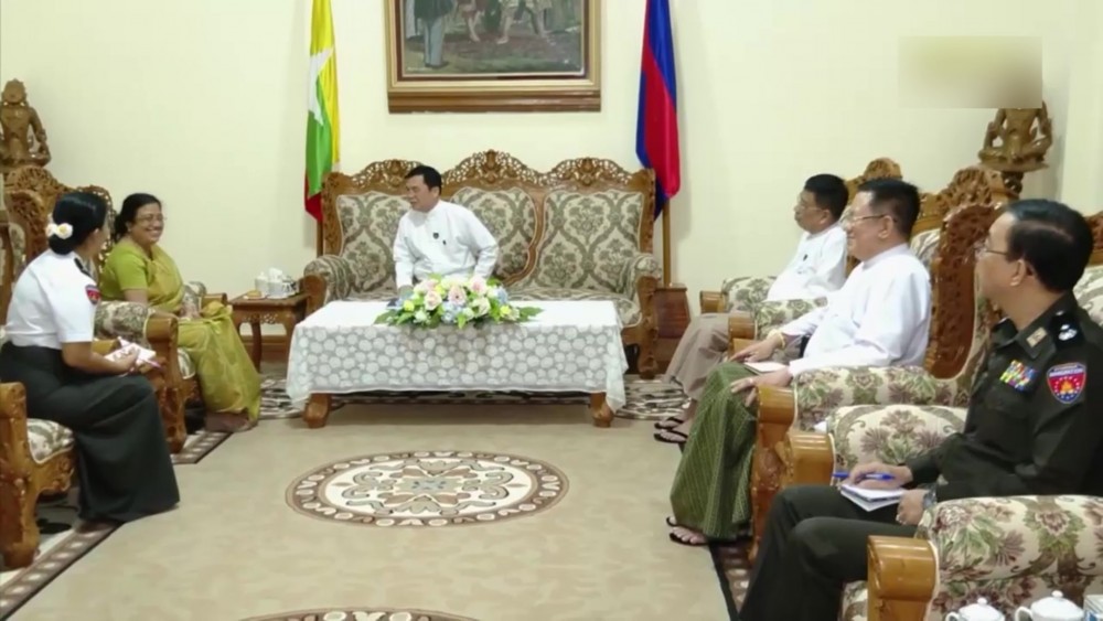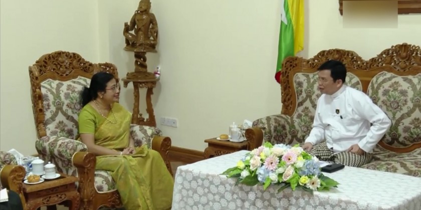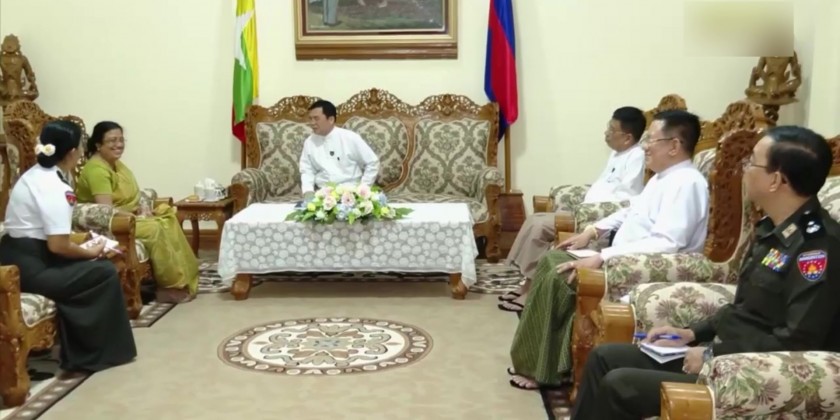 Union Minister for Immigration and Population U Myint Kyaing received a delegation led by Ambassador of Sri Lanka Mrs. Ponnamperuma Arachahige Prabashini Ponnamperuma at his office in Nay Pyi Taw on Tuesday afternoon.