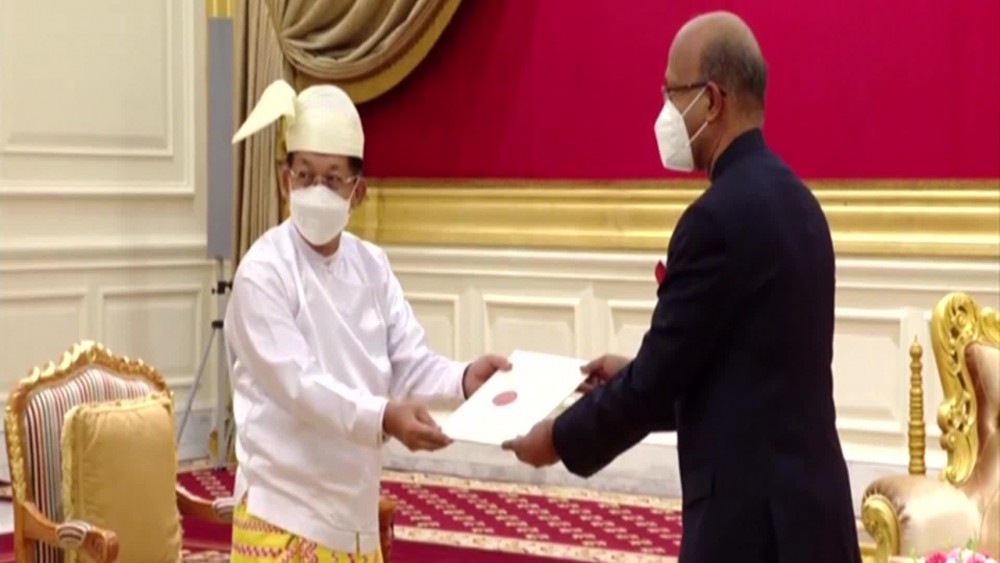 Chairman of the State Administration Council Prime Minister Senior General Min Aung Hlaing accepted the Credentials of newly accredited Ambassador of India to Myanmar Mr Vinay Kumar in Nay Pyi Taw on Wednesday.