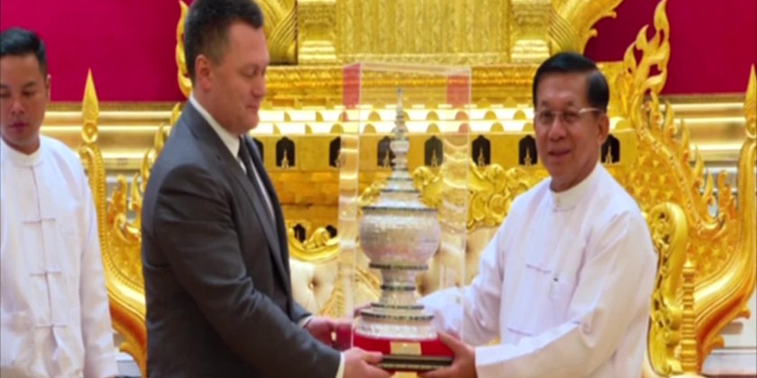 Chairman of the State Administration Council, Prime Minister, Senior General Min Aung Hlaing received the delegation led by Prosecutor General of Russia Mr. Igor Krasnov at the Credentials Hall of the State Administration Council Office in Nay Pyi Taw on 22nd March.