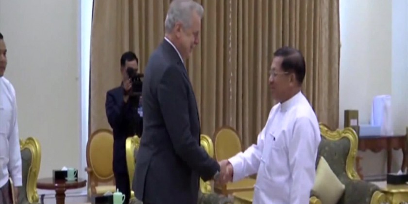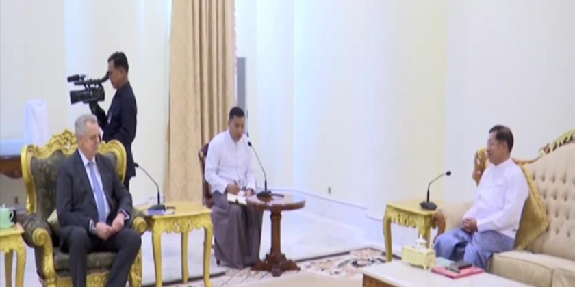 Chairman of the State Administration Council Prime Minister Senior General Min Aung Hlaing received a Russian delegation led by Chairman of the External Relations Committee, member of St. Petersburg Government Mr. Grigoriev Evgeny Dmitrievich at the State Administration Council Office in Nay Pyi Taw on Thursday.