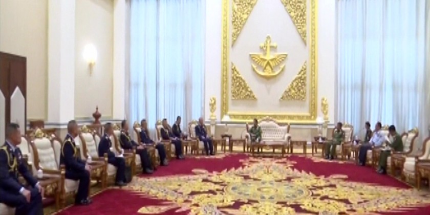 Chairman of the State Administration Council, Commander in Chief of Defence Services Senior General Min Aung Hlaing received the delegation led by Commander-In-Chief of Royal Thai Air Force Air Chief Marshal Alongkorn Vannarot who attended the 20th ASEAN Air Chiefs Conference (20th AACC) hosted by Myanmar. The meeting took place at Zeyathiri Beikman in Nay Pyi Taw in the morning on Friday.