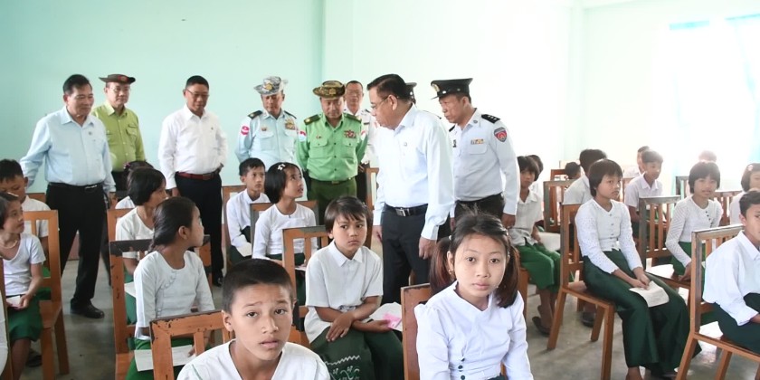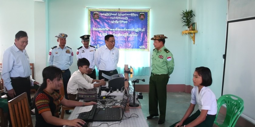 On January 6, the Tanintharyi Region Chief Minister U Myat Ko, along with the Commander of Coastal Region Command, Region ministers, departmental officials, and staff from the Tanintharyi Region visited the Atak (Phet) School in Kyonzu Township. They observed the biometric data collection process being conducted by the Kyunsu Township Department of Immigration and Population staff from the students at Basic Education High School (Pa-Htet) in Pa-Htet Village.