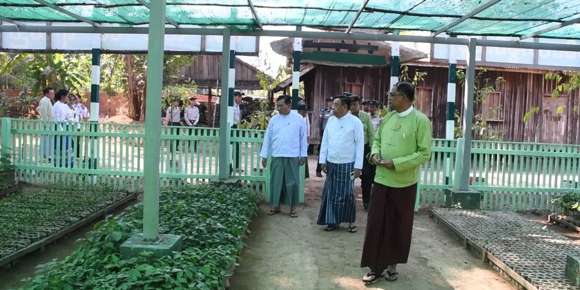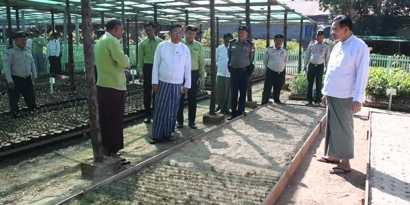 The Chief Minister and party then visited the Shan Chaung Community Nursery of the Forest Department, located in Shwepay Village, Myeik Township. The Director of the Forestry Department, U Win Naing-4, briefed them on the tree planting activities planned for the rainy season of 2025. The Chief Minister provided guidance on necessary actions and inspected the planting activities in the nursery.