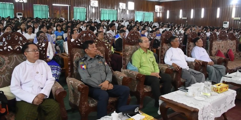 Next, the Region Advocate General U Aung Than gave talk on the provisions of the 2008 Constitution and election-related laws to the university's rector, pro-rector, faculty members, and students.