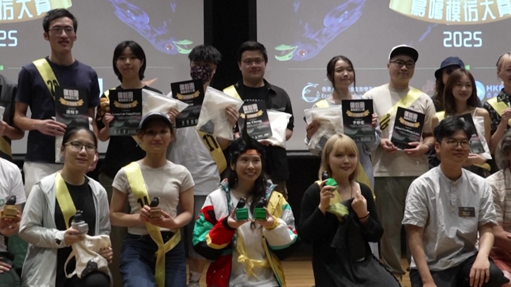 The Hong Kong Bird Watching Society staged its first-ever bird call contest on Saturday with people taking to the stage to mimic the rhythmic calls of the koel, brown fish owl, and Asian barred owlet. About 100 participants joined the event which aims to raise ecological awareness. Despite its relatively small size, more than 580 types of birds - about a third of China's total species - have been recorded in Hong Kong.