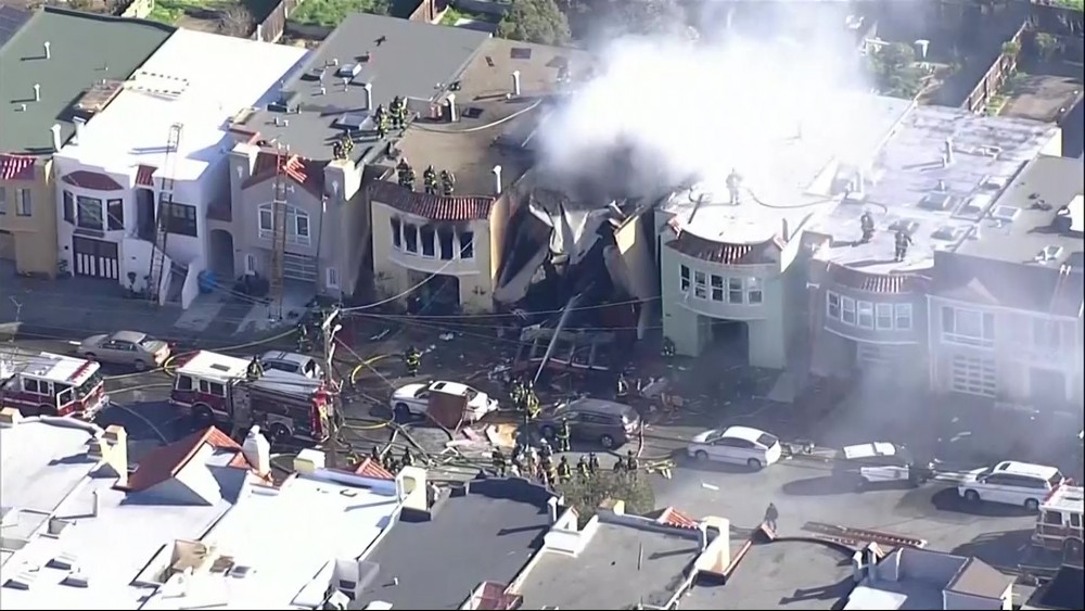 The San Francisco Fire Department says at least one person was injured in a house explosion and fire Thursday morning in the city's Sunset Neighborhood.