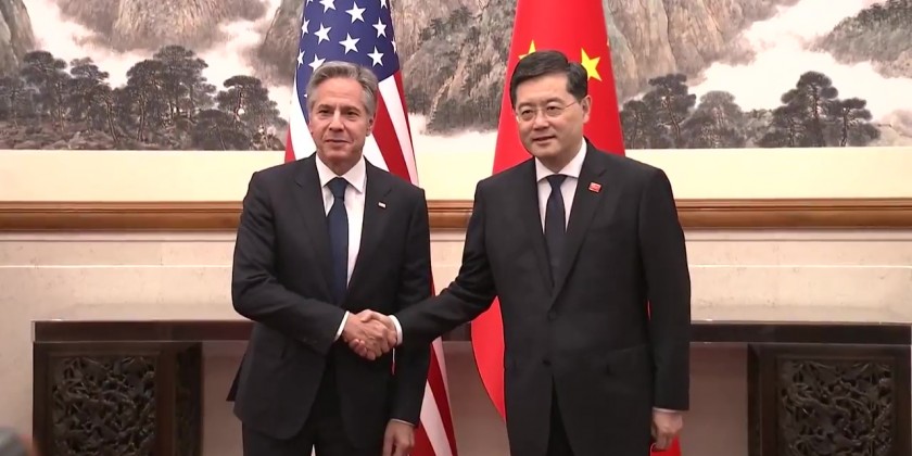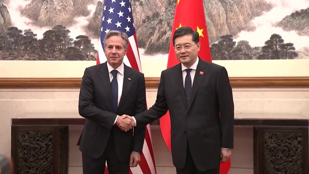 Chinese State Councilor and Foreign Minister Qin Gang met with U.S. Secretary of State Antony Blinken in Beijing on Sunday. Blinken's trip is the highest level by a US official to China in nearly five years.
