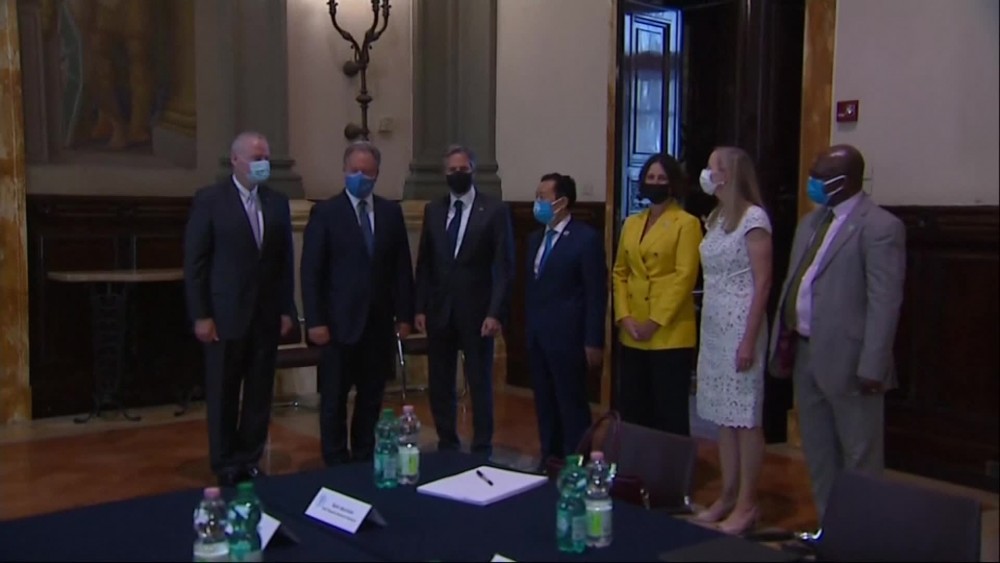 US Secretary of State Antony Blinken arrived in Rome on Sunday morning. Shorlty after his arrival, Blinken met with Italian Foreign Minister Luigi di Maio at the residence of Lewis M. Eisenberg, the US Ambassador in Rome.Blinken then met with representatives of the United Nations' food security agencies at the US Embassy in Rome.Following the meeting, Blinken held a press conference in the embassy's gardens, where he praised the close cooperation between the United States and its partners.