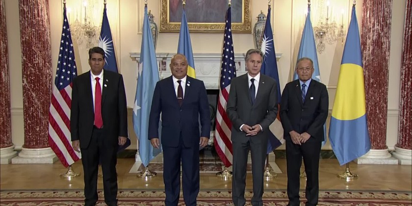 US Secretary of State Antony Blinken welcomed the Presidents of the Republic of Palau, the Federated States of Micronesia, and the Republic of the Marshall Islands to the State Department on Thursday. The leaders are in Washington to take part in the U.S.-Pacific Island Country Summit. Before their meeting, the Biden administration released its new Pacific strategy designed to bolster U.S. engagement with more than a dozen island nations on issues including climate change and maritime security while pledging to expand the U.S. diplomatic presence in the region.