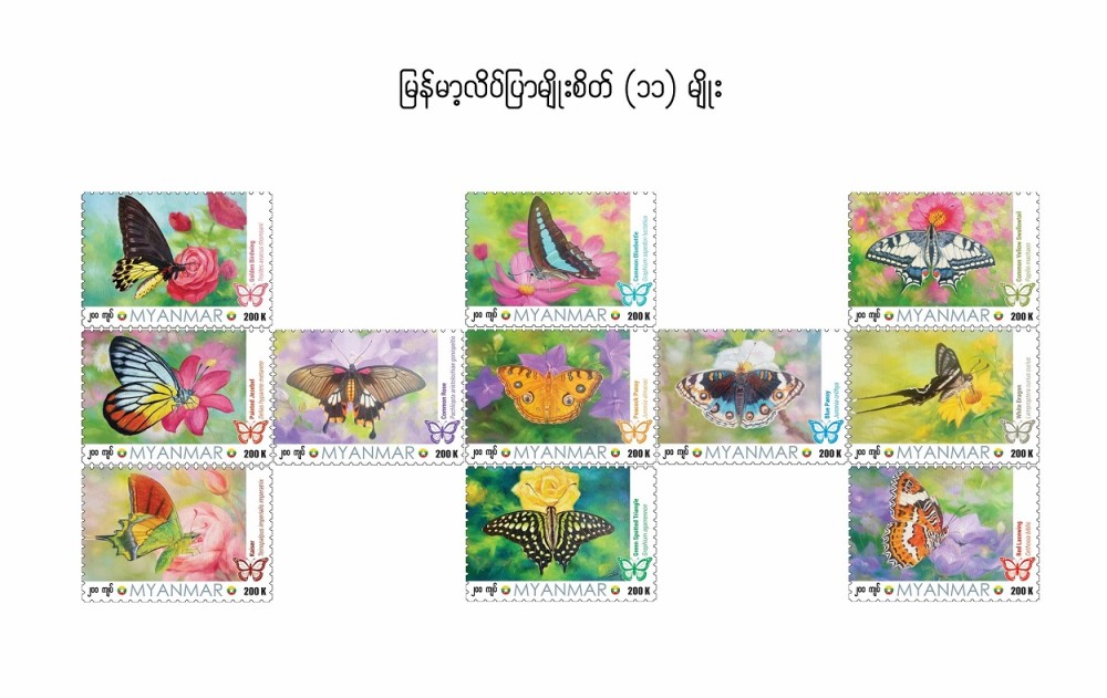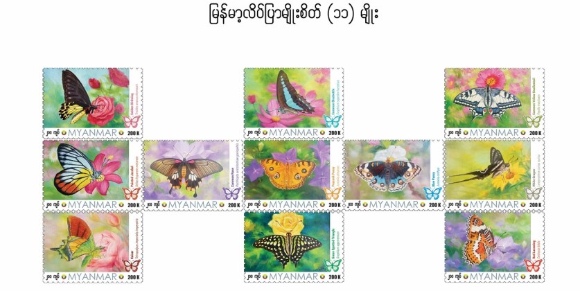 The Myanmar Posts under the Ministry of Transport and Communications, has previously issued stamps featuring 11 species of butterflies found in Myanmar.