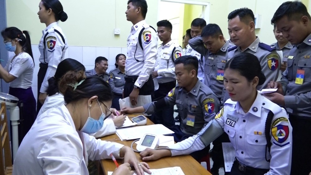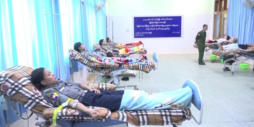 Members of the Myanmar Police Force and staff from the Ministry of Home Affairs made blood donations in Nay Pyi Taw, hailing the 80th anniversary Armed Forces Day.