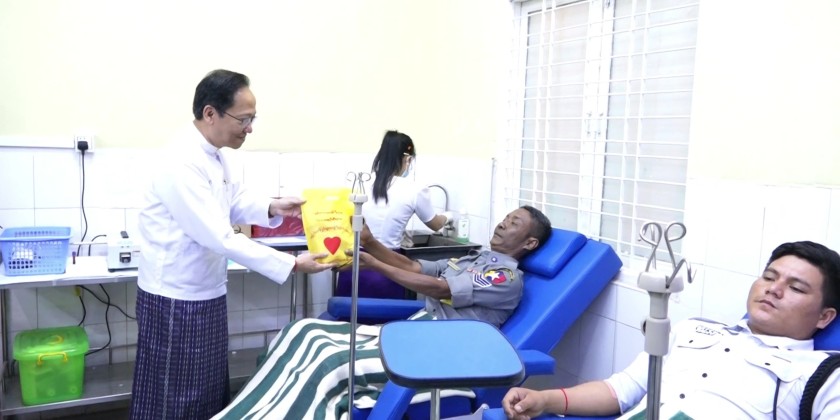 A total of 182 individuals donated blood at 100-bedded Nay Pyi Taw People’s Hospital and No.2 Defence Services Hospital. Union Minister Lt-Gen Tun Tun Naung and Union Minister for Health Professor Dr Thet Khaing Win, together with the officials, visited the hospitals to encourage the blood donors.