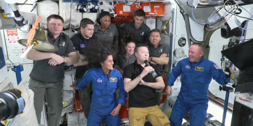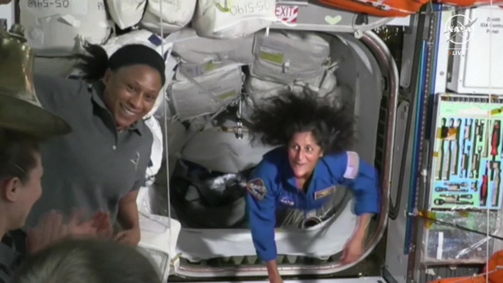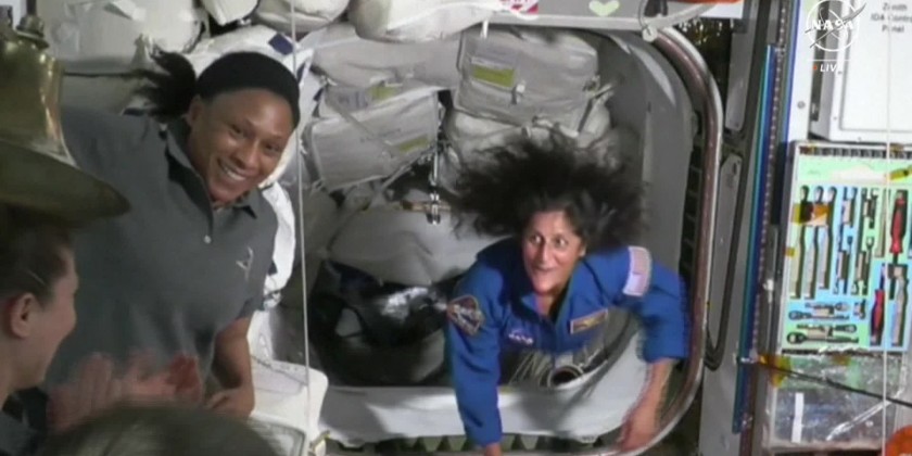 What a great and wonderful team effort." Wilmore and Williams join fellow astronauts on the ISS after floating through the hatch.