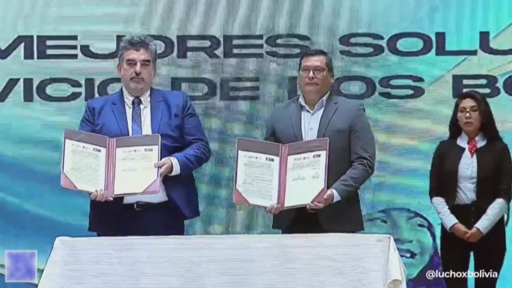 The president of the Bolivian lithium company Yacimientos de Litio Bolivianos (YLB) signs agreements with Russian Uranium One Group and Chinese Citic Guoan companies for USD 1.435 million investments on two lithium extraction plants.