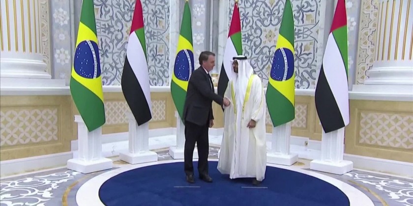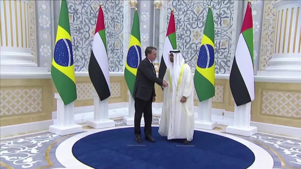 Brazilian President Jair Bolsonaro was welcomed by Abu Dhabi Crown Prince at the Presidential Palace in Abu Dhabi on Sunday on the first stop of his Gulf tour. Bolsonaro is scheduled to visit Doha and Saudi Arabia, where he will give a speech at the latter's Future Investment Initiative conference. The Brazilian president's tour of three Gulf states, hopes to turn the page on a diplomatic storm last year with Arab nations over a proposal to move Brazil's embassy in Israel to Jerusalem.