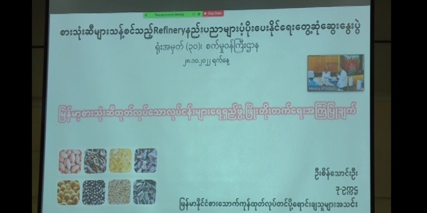 The Ministry of Industry held a meeting to provide technology for refining the edible oil on Friday. Union Minister Dr Charlie Than discussed that although there are cultivation of various oil bearing crops in the country, only peanut and sesame oil have been widely produced and used in local consumption.