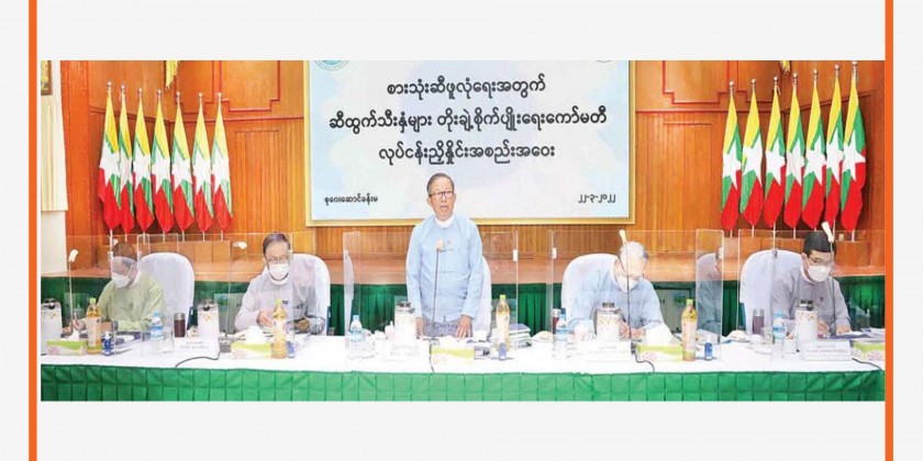 A Committee on Extended Cultivation of Edible Oil Crops held its meeting in Nay Pyi Taw on Tuesday. Union Ministers U Win Shein, U Aung Naing Oo, U Tin Htut Oo, U Hla Moe and Dr Pwint Hsan, Deputy Minister Dr Aung Gyi and officials attended the meeting.