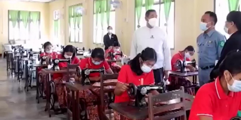 The Union Minister also met trainees, employees and officials from the Women’s Vocational Training School of Department of Education and Training in Hpa-An, provided school uniforms, stationery, books and sports equipment for the trainees, and inspected training campus, library, dormitory and restaurants.