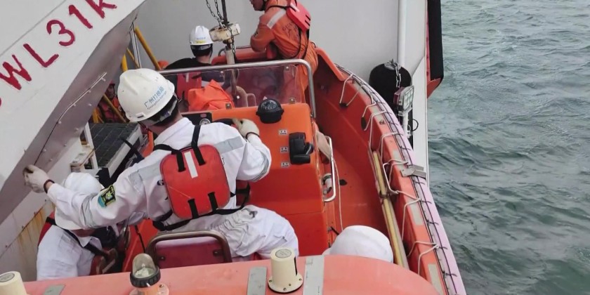 At 17:30 that day, on-duty crew of a Guangzhou Salvage Bureau ship anchored in preparation for the storm spotted an individual paddling on a stand-up paddleboard in open waters. Given the severe weather conditions, the crew found the situation highly unusual.