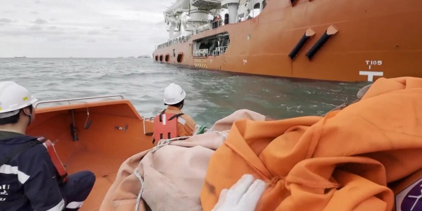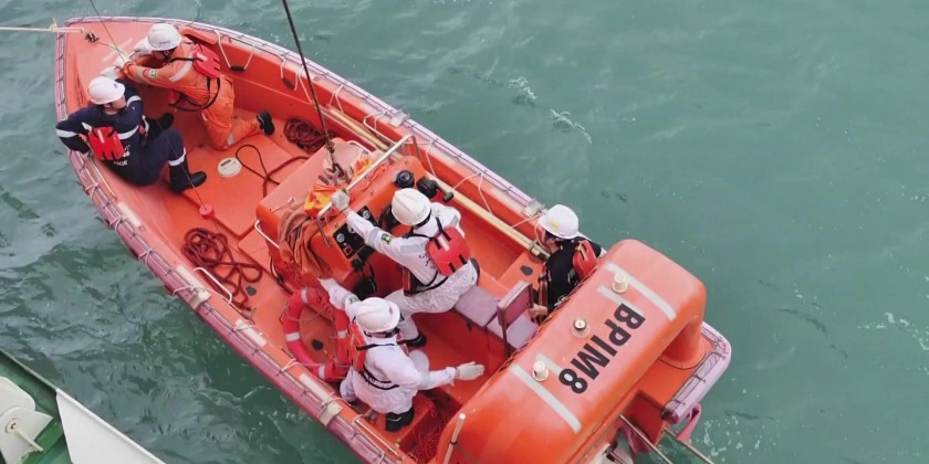 Using binoculars to further monitor the individual, they saw the person signaling for help and and faintly heard cries for help. The captain immediately issued an emergency rescue order, with the crew venturing out into the tumultuous waters in rescue boats. They brought aboard the boy at 18:08.