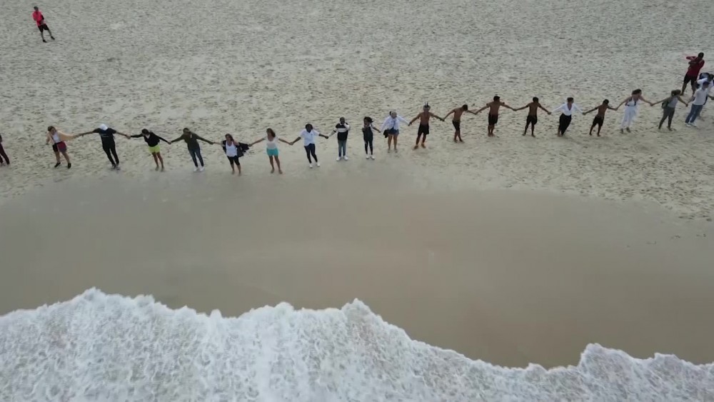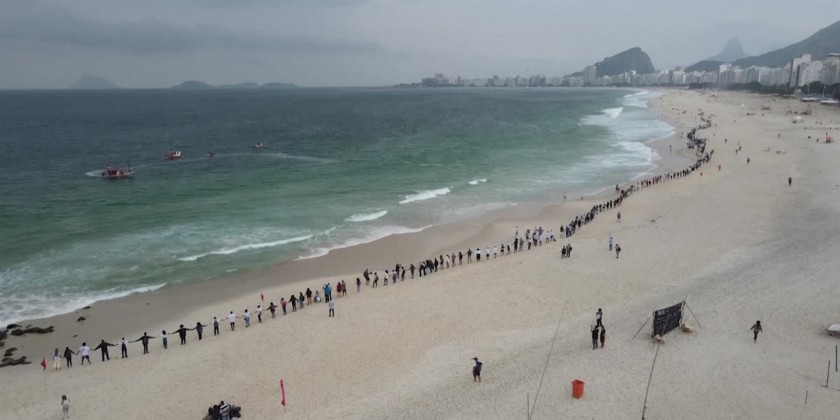 Dozens of activists gathered at Copacabana Beach in Rio de Janeiro on Wednesday in what they called "That Hug" to mark World Oceans Day. Participants held hands in a large line to "embrace the ocean" to draw attention to the improper disposal of waste, especially plastics, which have been causing significant damage to the oceans. The event took place simultaneously in three countries: Portugal, Brazil and the United States. After the event organized by the Route Brazil NGO, demonstrators picked up rubbish, mainly plastics from the sand on the beach.