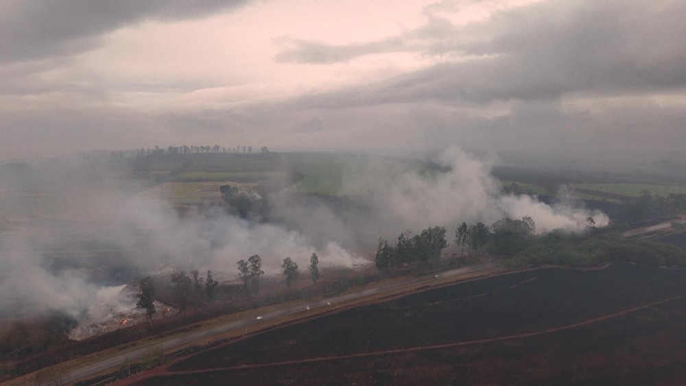 Wildfires burned through the Brazilian most populous state of Sao Paulo, causing transport disruptions and school closures. Two industrial plant workers died while fighting off the flames. Fires spread through southeastern Brazil, with the Sao Paulo governor decreeing a state of emergency in 45 municipalities. He said two people suspected of starting fires had been arrested.