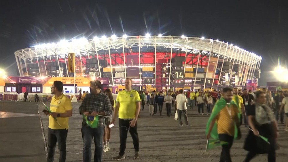Brazil fans joyfully celebrated their 1-0 win over Switzerland on Monday, outside Doha's Stadium 974 during the World Cup. Brazil struggled without Neymar at the World Cup on Monday.
