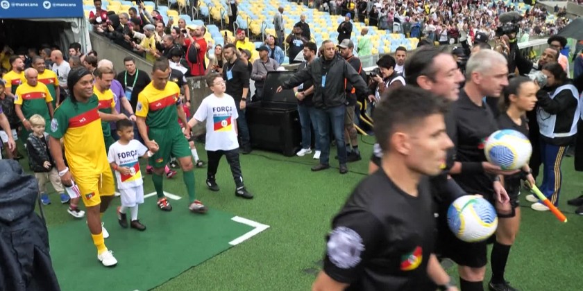 The Paris Saint-Germain and Barcelona legend notched two goals and an assist in the 5-5 tie at the match in Rio de Janeiro's Maracana stadium.Ronaldinho is from Brazil's Rio Grande do Sul state.Cities and rural areas alike in Rio Grande do Sul have been hit for weeks by an unprecedented climate disaster of torrential rains and deadly flooding.