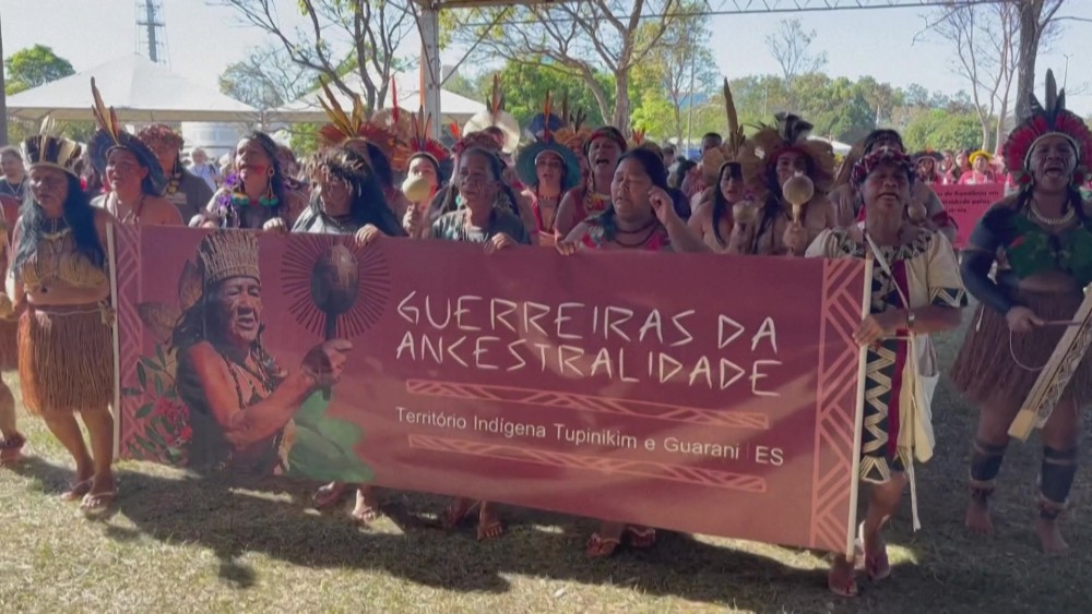 Hundreds of Indigenous women gather in Brasilia to start the 3rd Indigenous Women's March, aimed at advocating for women’s rights and protesting against the "time-frame argument," a bill that is being voted on by the Supreme Court.