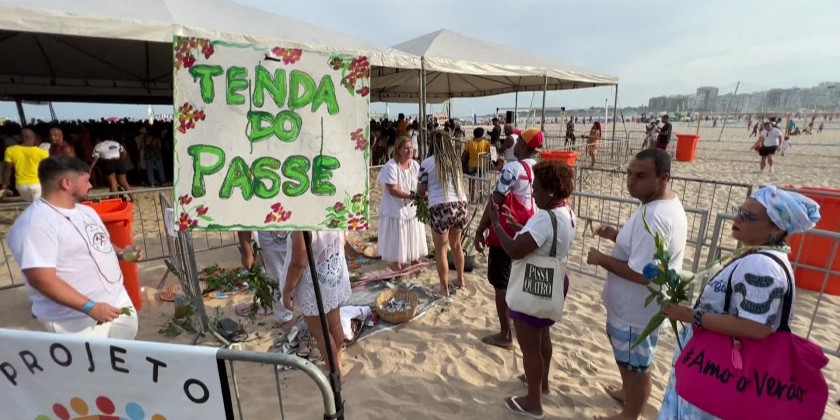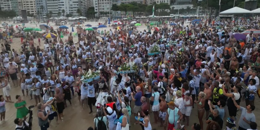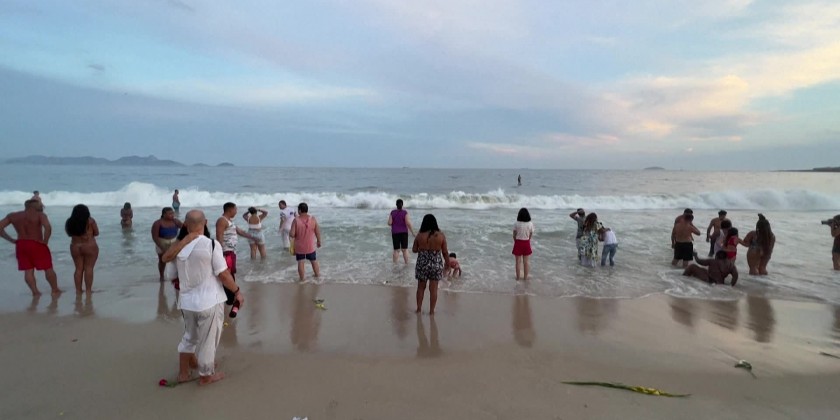 Hundreds of worshipers dressed in white took to Rio de Janeiro's Copacabana beach to make offerings to Yemanja, a sea goddess from traditional Afro-Brazilian religions Candomble and Umbanda. They placed flowers and other gifts in boats and push them into the ocean as an end-of-year celebration believing that sea goddess can bring love, prosperity, and peace to their lives and paths.