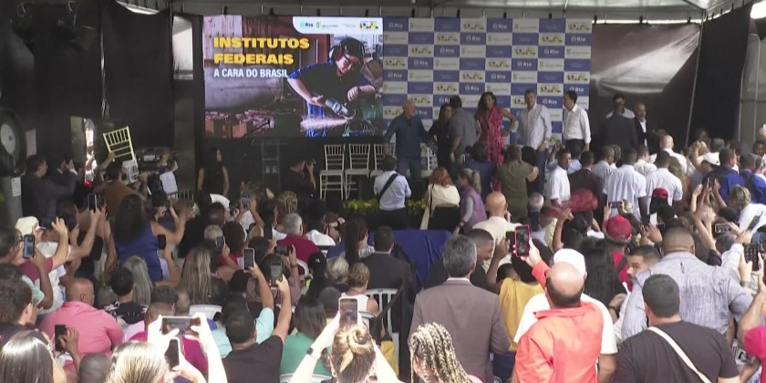 Brazil's President Lula da Silva and his wife on Wednesday attended a launching ceremony ofconstruction new campus of the Federal Institute of Rio de Janeiro in Complexo do Alemao, in the North Zone of the city.Speaking on the occasion, he said that the country’s goal is to help the people for gaining professional qualifications for the job market.