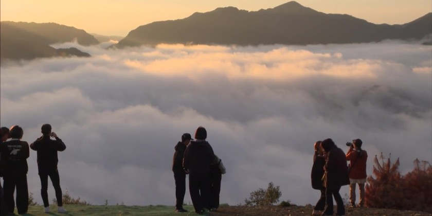 People climbed up Tsueno Peak in Kumano City to a location at an altitude of 495 meters to see the stunning natural phenomenon forming against the backdrop of mountaintops. The breathtaking landscape emerged as temperatures around the peak tumbled close to 10 degrees Celsius.