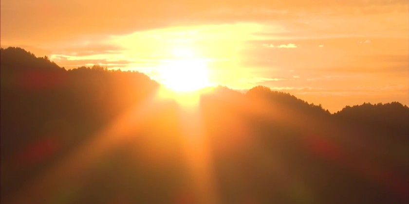 The vast expanse of stark white clouds turned orange when the sun began to rise above a nearby mountain. The horizon on the Kumano Sea, just off the coast of the city, was also visible farther away. The awe-inspiring scenery may appear around Tsueno Peak on mornings from around this time of year through winter if the skies are clear and the temperature drops sharply around dawn.