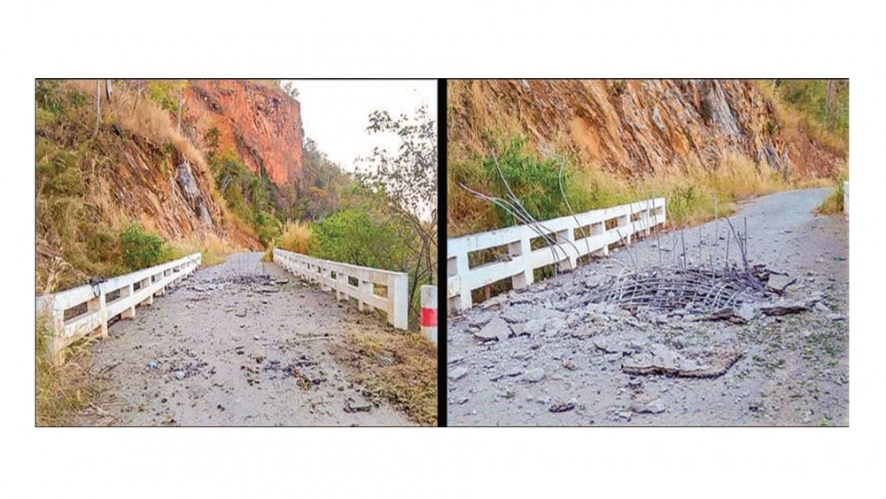 A combined team of KNPP and PDF terrorist groups bombed a reinforced concrete bridge on Shadaw-Loikaw road of Kayah State at about 9:30 am on 2 January.