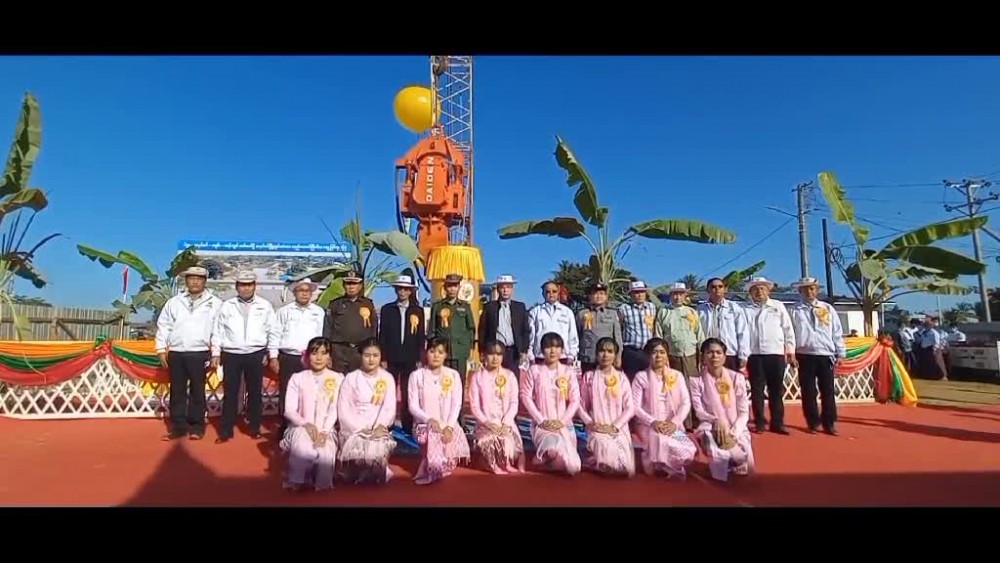 The Bridge is 210 feet long, 24 feet of vehicle lane and attached 3.6 feet of foot path at the two sides of the bridge. It’s a type of bridge bored pile foundation and steel-reinforced concrete bridge. Afterward, the chief minister and deputy minister arrived at the place where the stake driving ceremony to be for Inner Township bridge of Thanapin Township and gave the remarks.