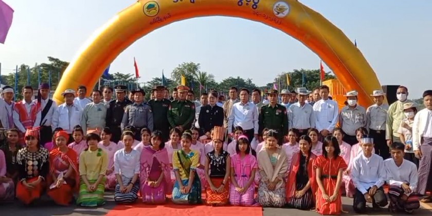 It’s needed to protect and maintain the bridge for the long term use. Next, a local resident expressed words of thanks for the construction of the bridge and the region chief justice and officials opened the bridge by cutting the ceremonial ribbon and posed for the documentary group photo. The Chief Minister unveiled the bridge’s stone inscription by pressing the auto button, sprinkled with the scented water, viewed the bridge by walking along it and the provided cash of honor to the national races traditional culture group and the band.