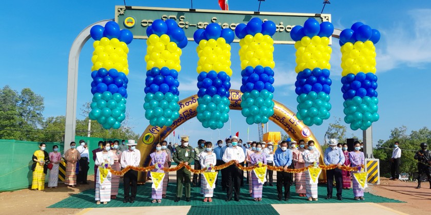 Afterward, the Union Minister U Shwe Lay, Chief Minister U Myat Ko, Commander of Coastal Command Ma-J Gen Saw Than Hlaing, deputy minister for construction U Win Pe, deputy minister for agriculture, livestock and irrigation Dr. Aung Gyi opened the bridge by cutting the ceremonial ribbon.