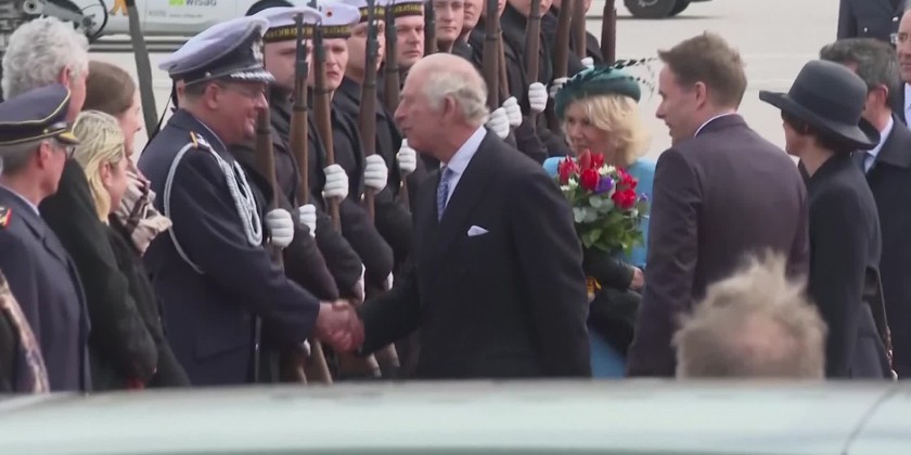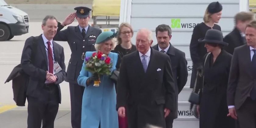 Britain's King Charles arrived at Berlin-Brandenburg Airport in Germany on Wednesday, his first international visit as the U.K.'s new monarch. The trip starts Wednesday in Berlin, where German President Frank-Walter Steinmeier will welcome Charles and Camilla, the queen consort, at the historic Brandenburg Gate. The king is scheduled to give a speech to the Bundestag, Germany’s parliament, on Thursday.