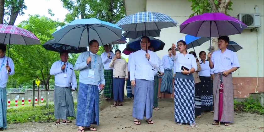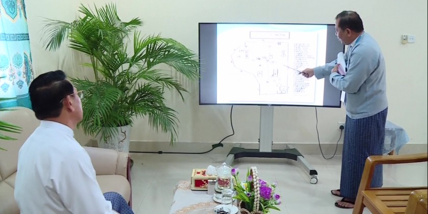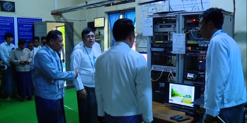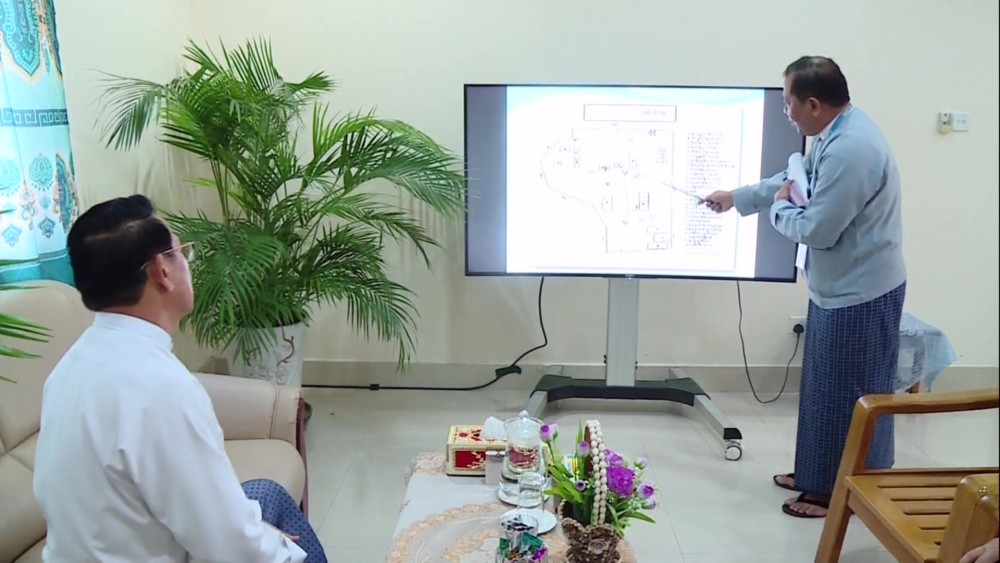 During the inspection, official reported on the information of Pyinamana-Thapyay Taung relay facility, work processes of the Outdoor Production Division and PA (Public Address) services, installation of antennas on the tower by private transmitters and public stations, as well as the plan for constructing a staff housing.