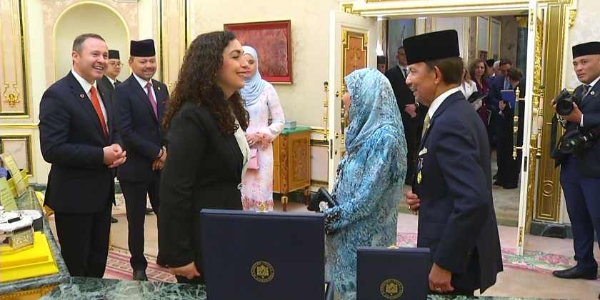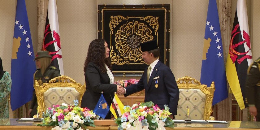 His Majesty Hassanal Bolkiah, the Sultan and Yang Di-Pertuan of Brunei Darussalam held a Bilateral Meeting with Her Excellency the President of the Republic of Kosovo Vjosa Osmani-Sadriu at Nurul Iman Palace, Bandar Seri Begawan on 6th May.