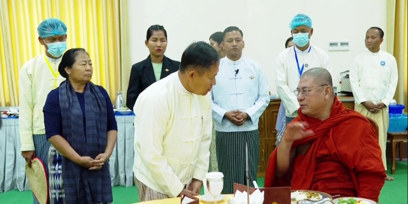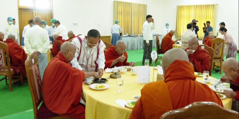 Later, the Vice Senior General and wife and officials offered the day meal to the Sayadaws and members of Sangha.