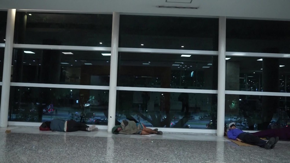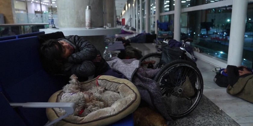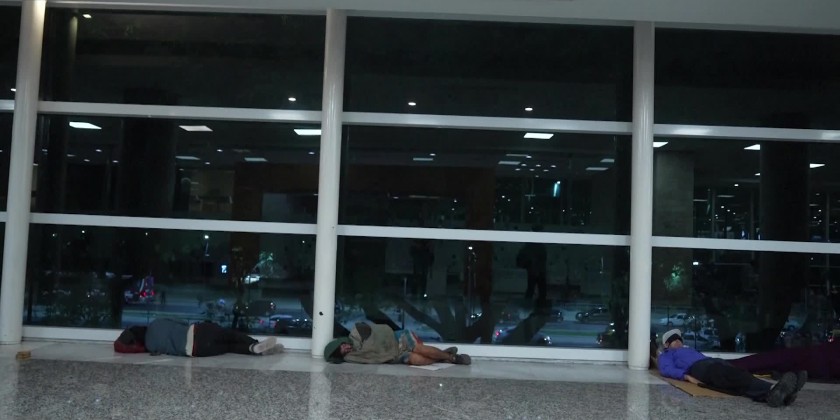 At the start of the long Easter weekend, the airport in the Argentine capital is filled with homeless people sleeping. Soon the airport will be full of travelers gearing up for a long weekend.