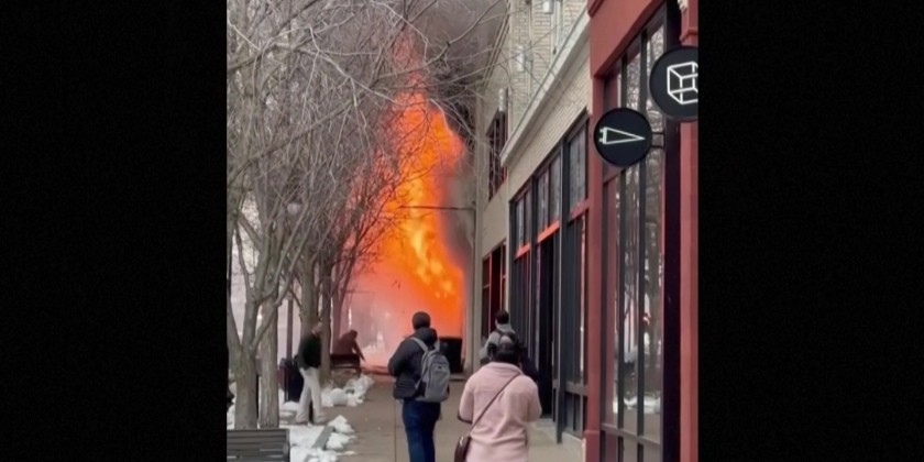 A firefighter died inside a burning building in downtown Buffalo, New York, on Wednesday after apparently becoming trapped by falling debris from a blaze that led to an explosion that sent flames and smoke into the street. The firefighter was reported missing shortly after 10 a.m., not long after crews arrived at the commercial building.