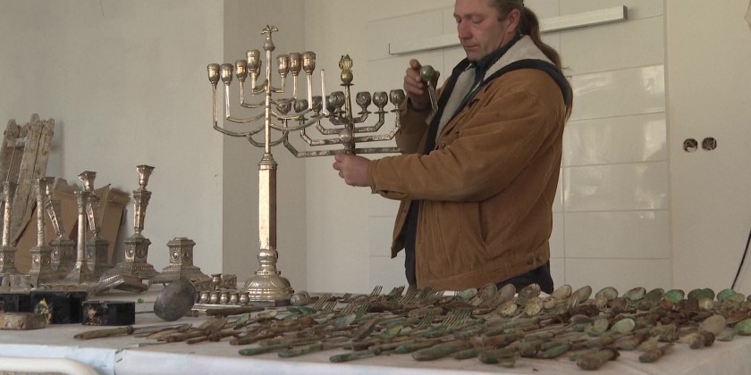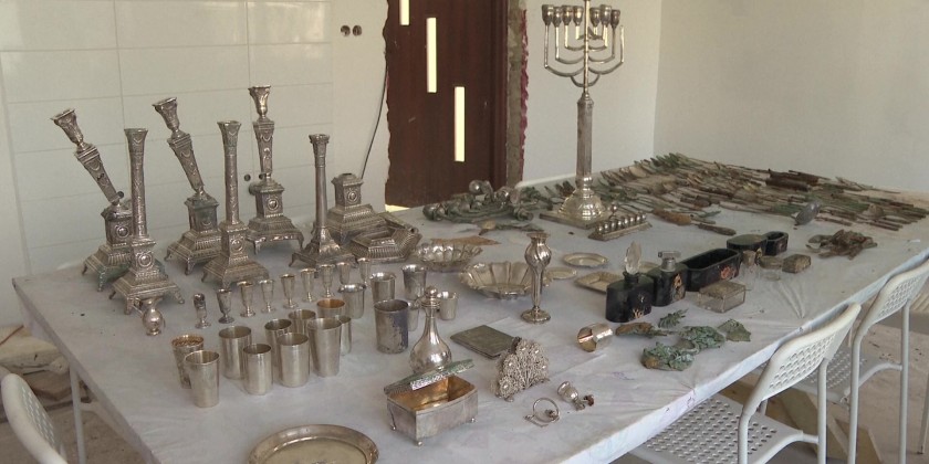 Authorities were showing some 400 items - including silver-plated menorahs, hanukkiahs, tableware and items of daily use, which were uncovered last month during house and yard renovation works.