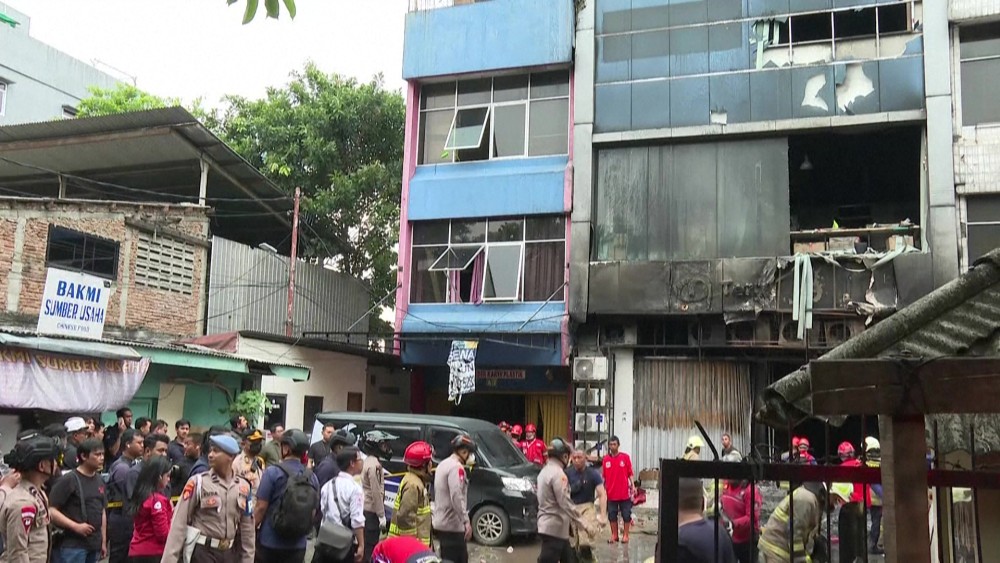 But the toll could still rise as emergency workers search the scene for people possibly trapped inside the building or more victims. Police said a battery that exploded on the first floor had ignited the fire, which spread to the upper levels of the building. At least 100 firefighters and 29 fire trucks were deployed to extinguish the blaze, according to the Jakarta Fire Department.