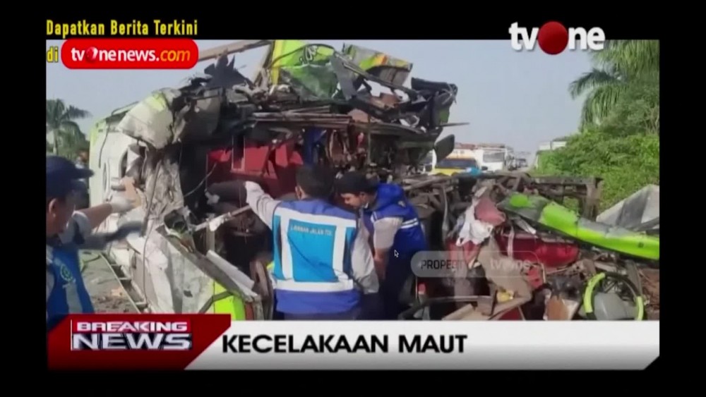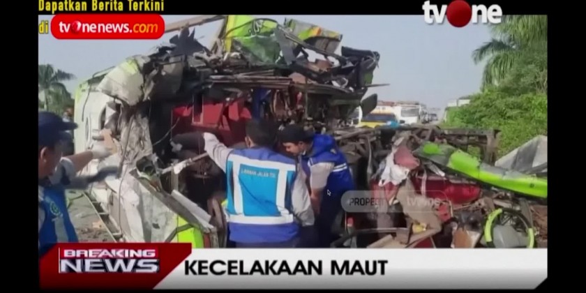A tourist bus with an apparently drowsy driver slammed into a billboard Monday on a highway on Indonesia’s main island of Java, killing at least 14 people and injuring 19 others. The bus, carrying Indonesian tourists from Surabaya, the capital of East Java province, was returning from a trip to Central Java’s Dieng Plateau, a popular mountain resort, when it hit the billboard on the Mojokerto toll road just after dawn. Police are still investigating the cause of the accident, but that the driver reportedly appeared drowsy before the crash. Road accidents are common in Indonesia because of poor safety standards and infrastructure.