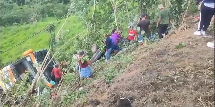 The bus was carrying a group of schoolchildren, their families and teachers from the town of Piura to the Amazonian department of San Martin. It crashed while driving along a road in the San Marin region.